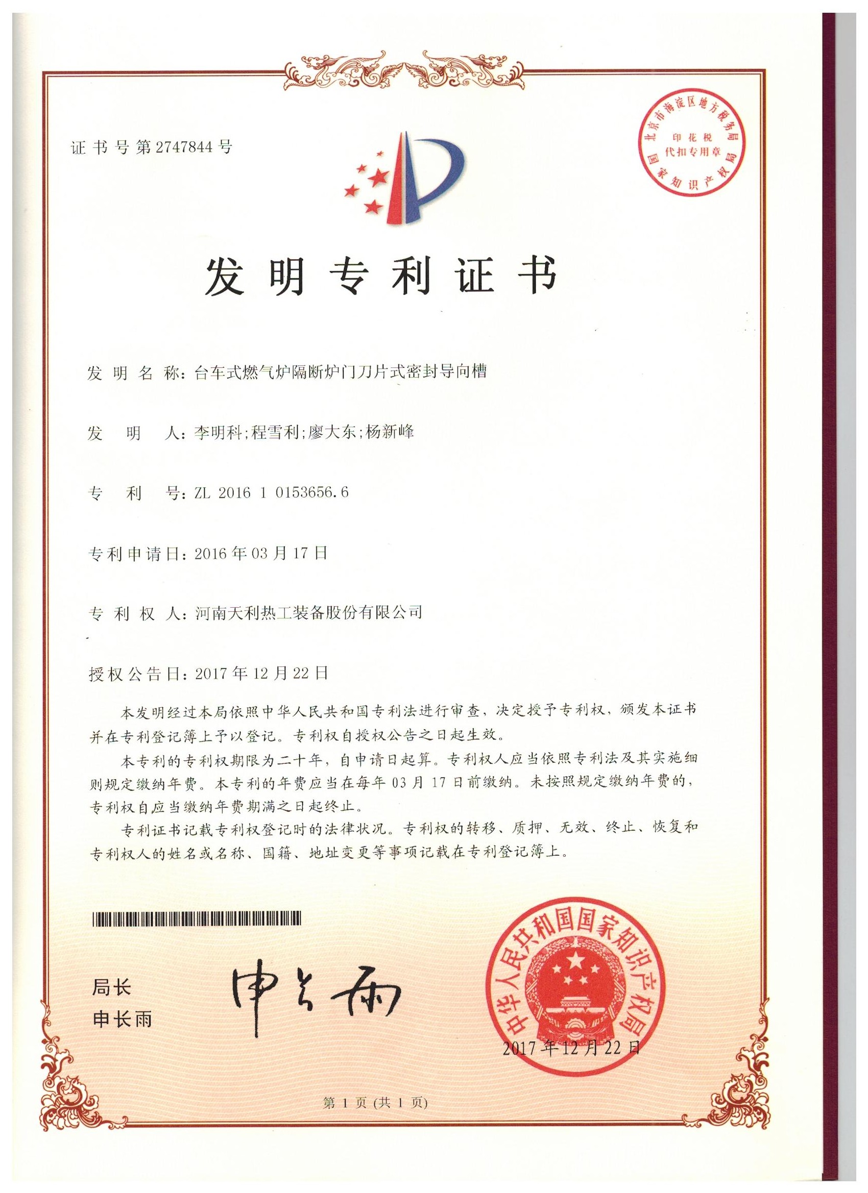 臺車式燃氣爐隔斷爐門刀片式密封導向槽