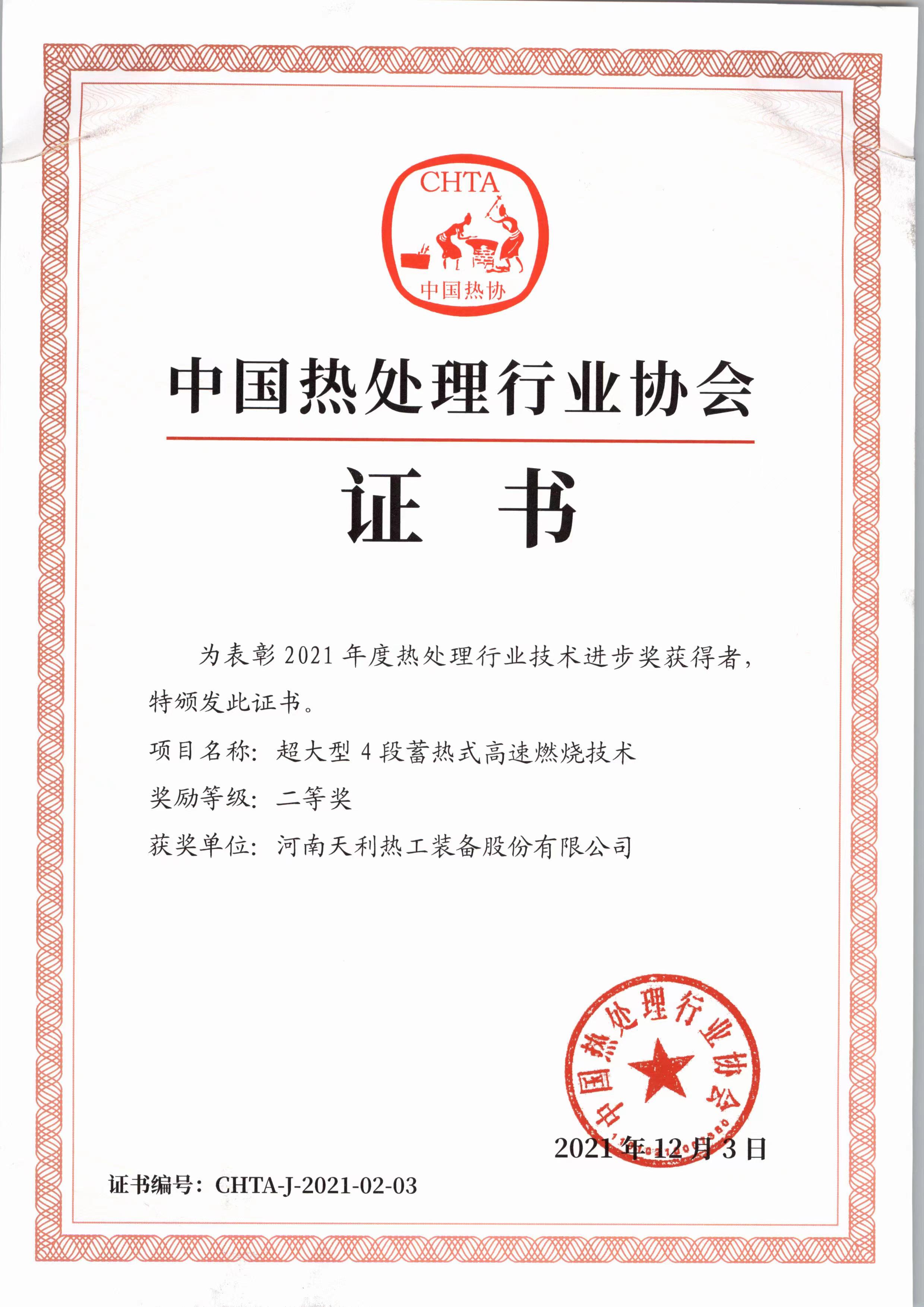 中國熱處理行業協會證書