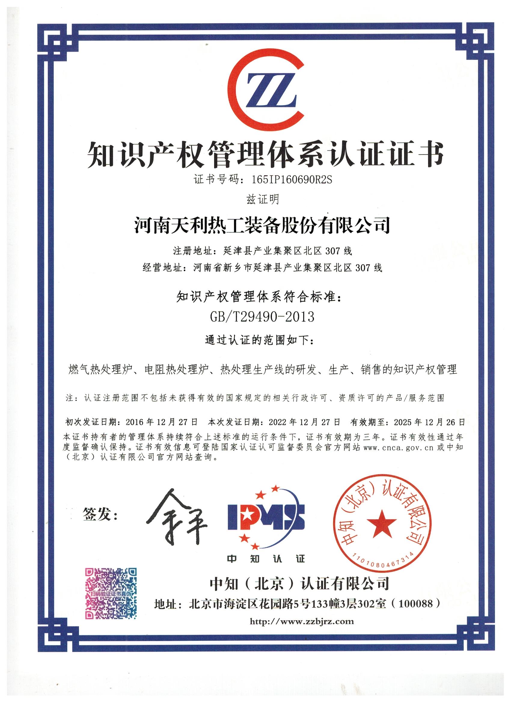 知識產權管理體系證書