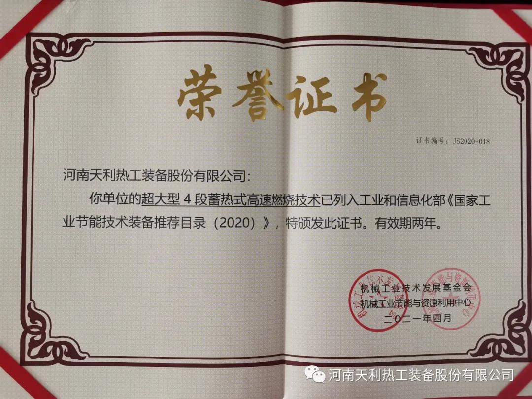 會議發布了2020年《國家工業節能技術裝備推薦目錄》及《“能效之星”產品目錄》入圍企業名單,并為2019、2020年入圍企業發放能效標識及相關證書。天利熱工兩項技術被列入推薦目錄,其中釬桿調質懸掛線蓄熱式熱處理技術被列入《國家工業節能技術裝備推薦目錄(2019)》,超大型4段蓄熱式高速燃燒技術被列入《國家工業節能技術裝備推薦目錄(2020)》