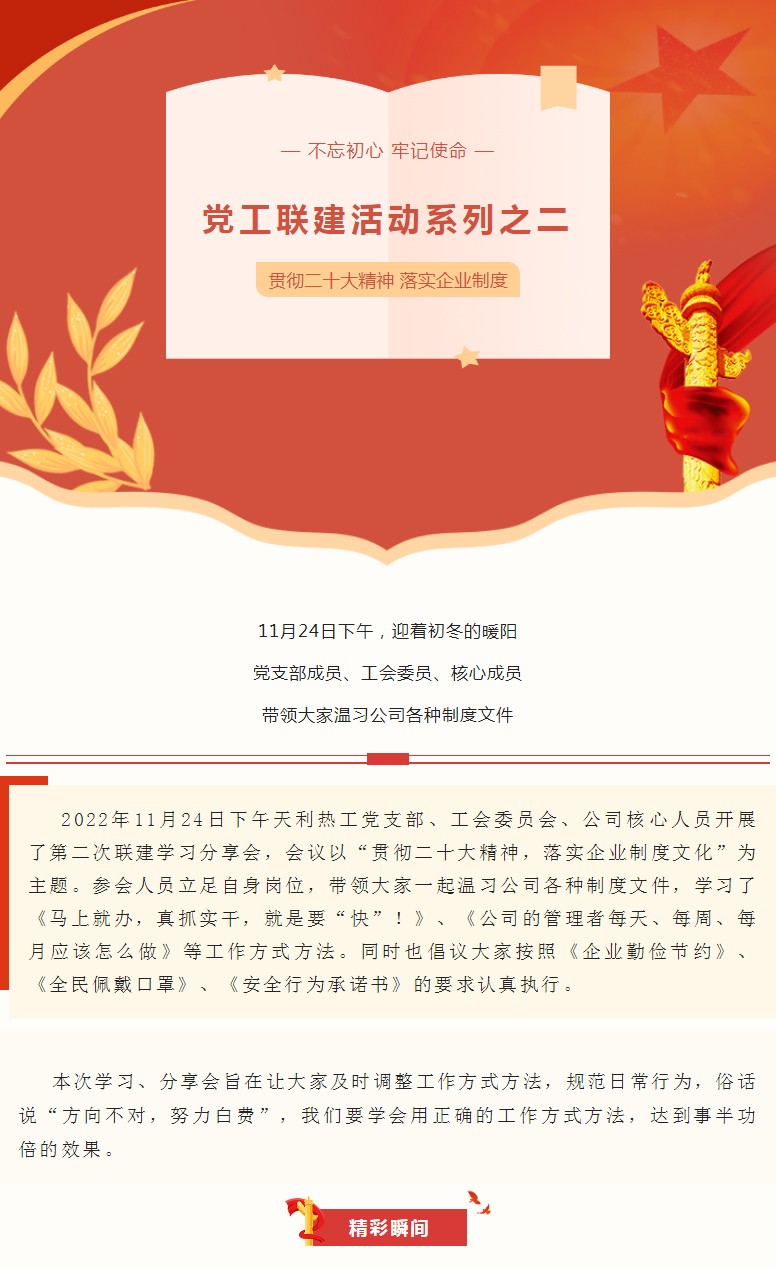 【黨工聯(lián)建】活動(dòng)系列之二丨貫徹二十大精神-落實(shí)企業(yè)制度文化