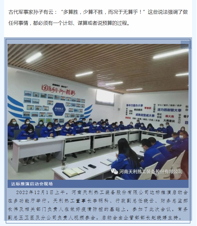 天利熱工2023年年度目標“達標推演”活動拉開序幕